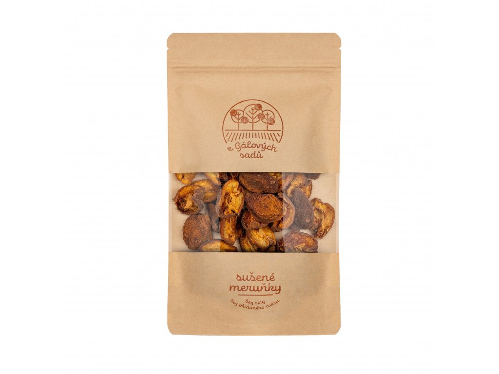 Možná znáte křiklavě oranžové meruňky z obchodu, oranžová barva je způsobena obsahem SO2. Nesířené meruňky jsou sice tmavší, ale zdravější a chutnější než ty sířené. Sušené meruňky z Gálových sadů jsou sladké, aromatické a šťavnaté.